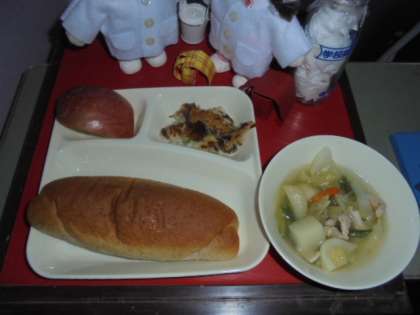 今日の献立は、鶏肉とじゃがいものスープ煮、きのこのドリア、りんご、パン、牛乳です。いよいよ、明日が2学期最後の給食です。