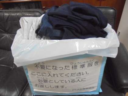 懇談会の間、たくさんの標準服やカッターシャツ、ブラウスなどが集まりました。ご協力、ありがとうございました!