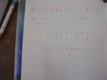 算数の学習です。正多角形について、勉強しています。