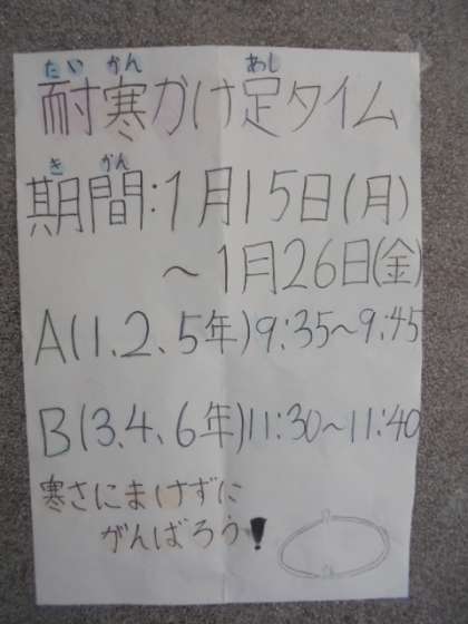 来週から、休み時間に全学年でかけ足タイムをします。子どもたちの体力づくりのために、取り組みます!