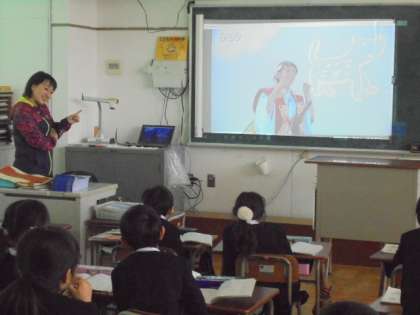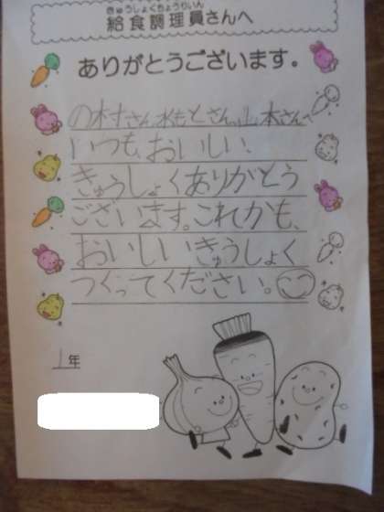 (上)(中)国語の学習で、「むかしばなし」を勉強しています。NHKの動画を見ています。(下)給食調理員さんへお礼の手紙を書いています。