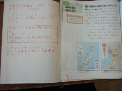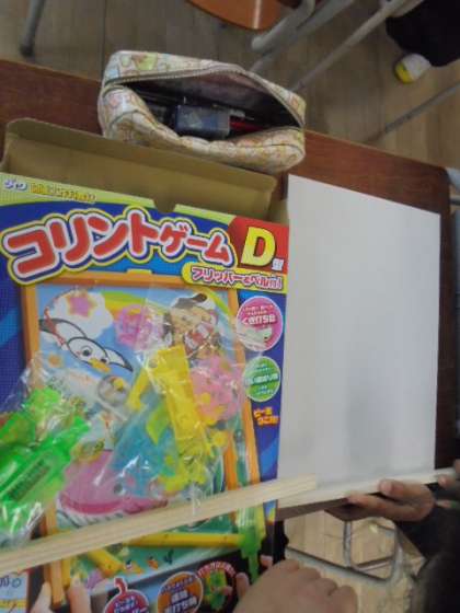 (上)社会の学習です。(中)算数の学習です。(下)図画工作で、コリントゲームを作ります。