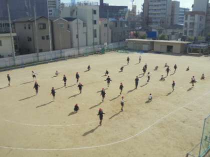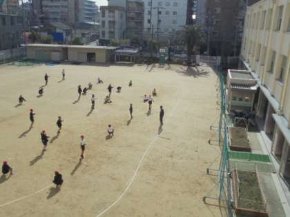軽快な音楽に合わせて、縄跳び。そして、持久走。最高学年は、体力づくりもかっこいいです!