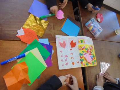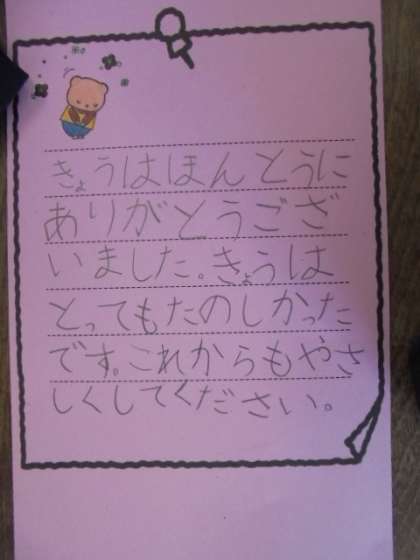 2年生のおにいさん、おねえさんと一緒におもちゃまつりを楽しみました。1年生の子どもたちは、お礼の折り紙とお手紙を作っています。