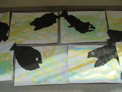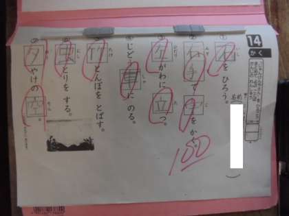 (上・中)国語の教科書に出てくる「スイミー」の絵を描きました。(下)漢字テスト、おめでとう。100点!
