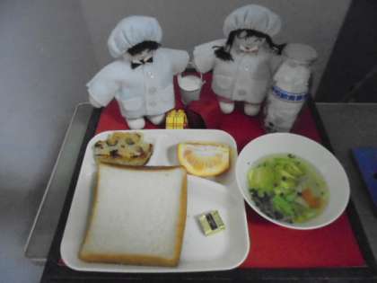 今日の献立は、押し麦のグラタン、スープ、いよかん、パン、牛乳です。