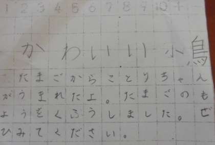(上)たまごからうまれたかわいいことりです。(下)リアルな眼鏡。上手です。