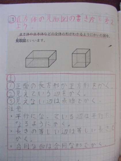 算数の学習も、まとめに入っています。ノートがていねいです。