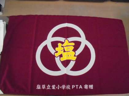 PTAが収集、集計してくださったベルマークで、まっさらな校旗を購入させていただきました。他にも、一輪車やボールなども購入させていただきました。PTA役員、学級委員会をはじめ、会員の皆様のご協力に感謝申し上げます。
