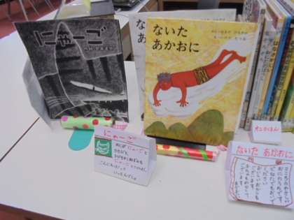 (上)学校図書館補助員の小前先生がすすめてくださっている本です。(下)図書委員会の子どもたちからのおすすめの本です。