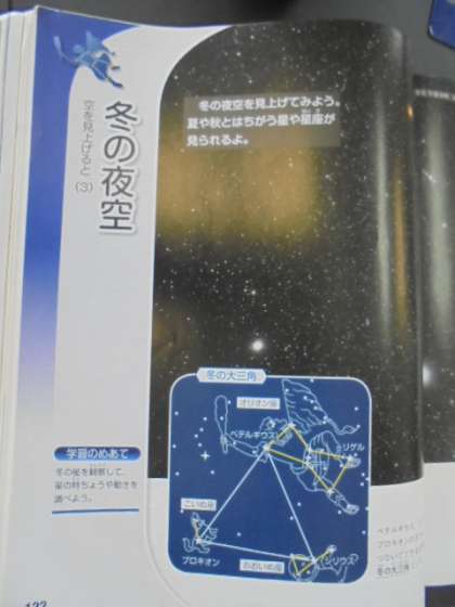 (上)理科で、「冬の夜空」について勉強しています。(下)図画工作で、「コリントゲーム」を作っています。
