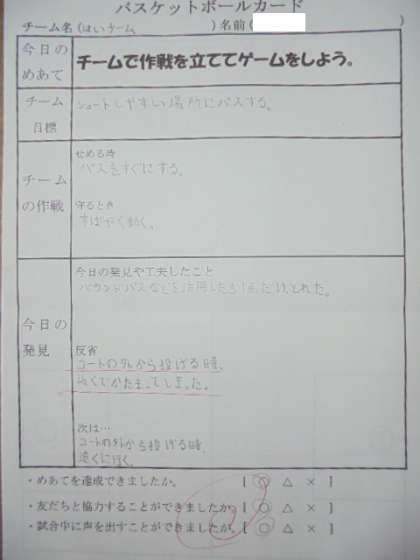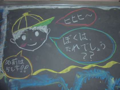 (上)バスケットボールの学習カードです。(下)教室後ろの黒板に書いてあったクイズです。答えがいになりますね。