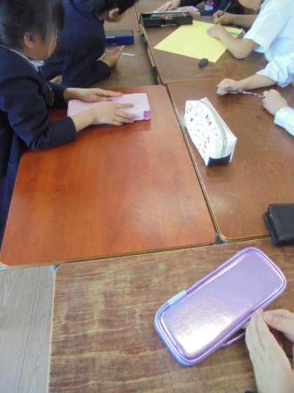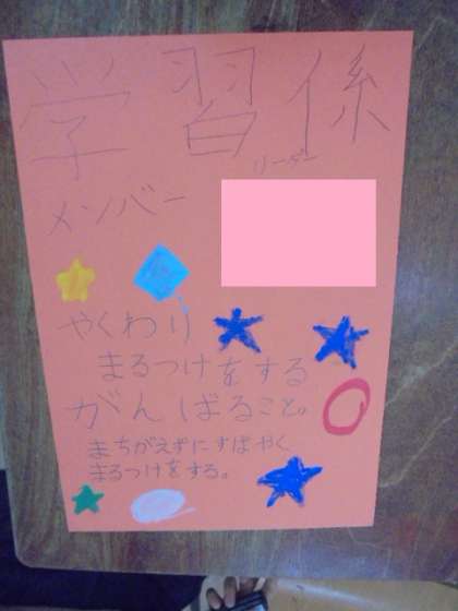 (上)国語の教科書です。(中)(下)班や係の活動です。