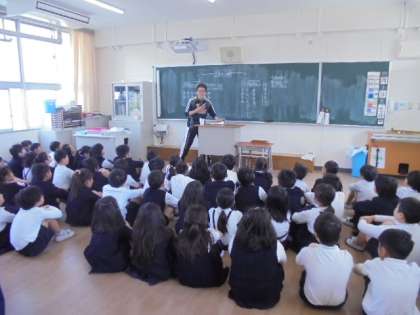 児童会活動について、谷山先生がオリエンテーションをしてくださっています。高学年の自覚が芽生えています。