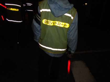 午後7時より、浪速防犯協会立葉支部(河津 一支部長)の皆様による夜間パトロールがありました。安全・安心で、住みやすい街づくりのためご尽力くださり、ありがとうございます。子どもたちをこれからも見守ってください。難波中学校の先生方や浪速警察、桜川交番の方々も来られました。