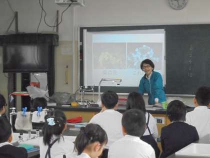 (上)理科の学習です。書画カメラやタブレットなどを使って、わかりやすく授業をしています。