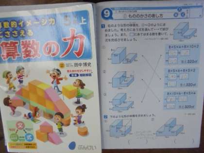 (上)算数で、「もののかさの表し方」を勉強しています。