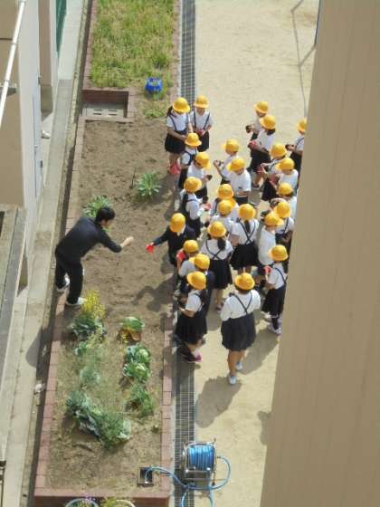 先生から花の種をもらって、植えました。