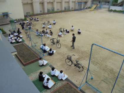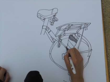 (中・下)自転車の絵を描いています。みんな、とても上手です。