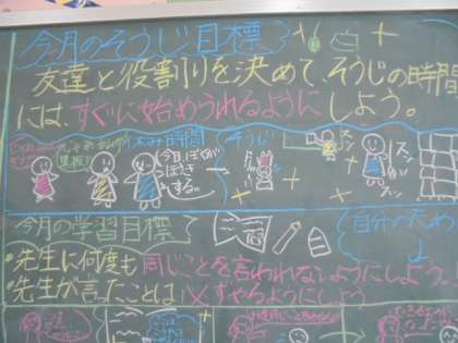 (上)昨日に続いて、教室後ろの黒板です。心構えが素晴らしい!