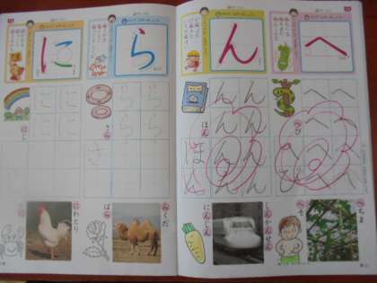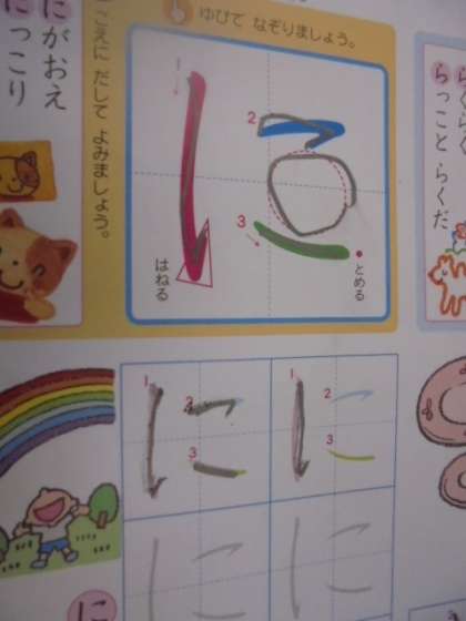 ひらがなの勉強をがんばっています。入学して1か月が経ち、できることが増えてきました。