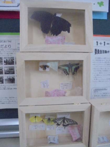 理科の学習で、昆虫について勉強しています。お友だちが、昆虫採集をして、見事な標本をつくってくれました!