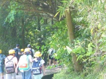 4〜6人の班に分かれて 様々な石造物をめぐり、最終ゴール地 石舞台古墳に向かいます。石造物を目にした子ども達は、「大きい!」「すごいなぁ」「不思議〜」と感嘆の声をあげながら、楽しそうに進んでいきます。