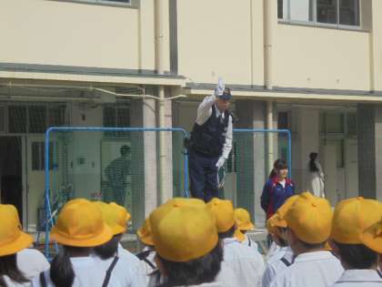 (中)桜川交番のおまわりさんが、防犯指導をしてくださいました。