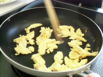 キャベツにはカレー味をつけて、スクランブルエッグを作って・・・盛り付け。