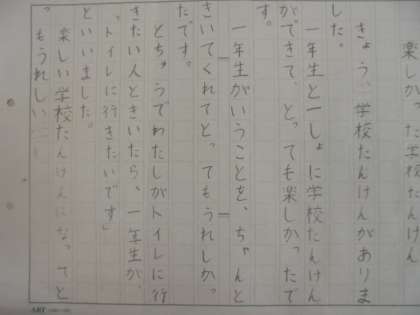 (下)作文です。学校たんけんでは、1年生を上手に案内しました。