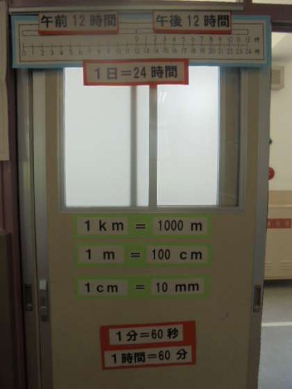 (中)算数の「単位」を教室の扉にわかりやすく掲示しています。
