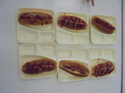 (上・中)調理実習で、ホットドッグを作りました。とてもおいしそうです。