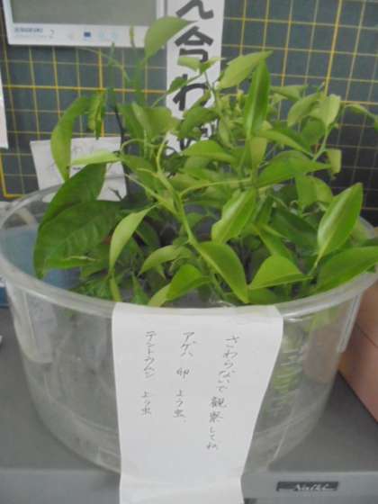 理科を指導してくださっている有田先生が、てんとうむしやちょうの幼虫を発見!子どもたちが観察できるよう、準備してくださいました。