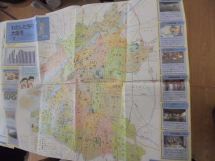 (下)社会で、大阪市の地図を調べています。