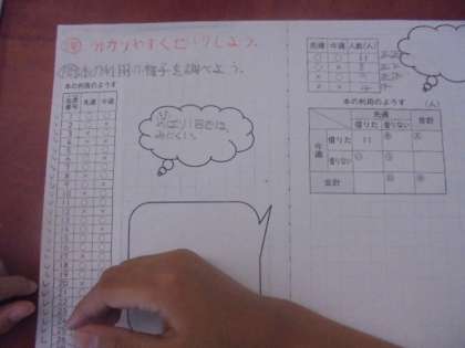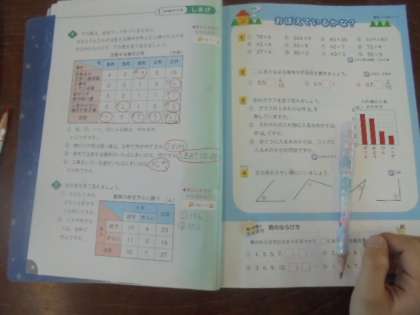 算数の学習です。今の単元は、学年を3つのグループに分けて、習熟度別少人数指導をしています。