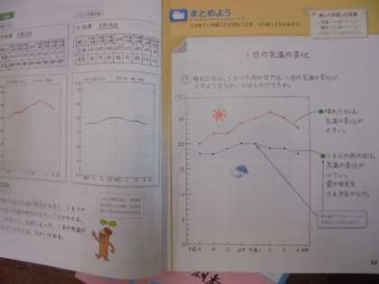 (上)理科の学習です。1日の気温の変化について勉強しています。
