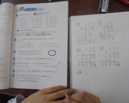 算数の学習です。ノートがとてもていねいです。