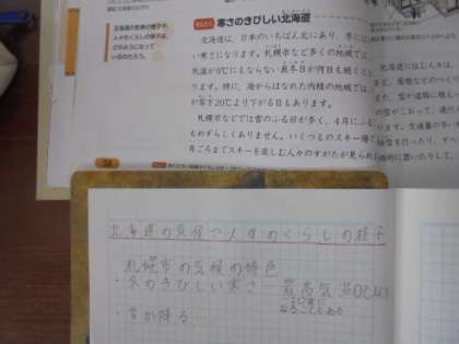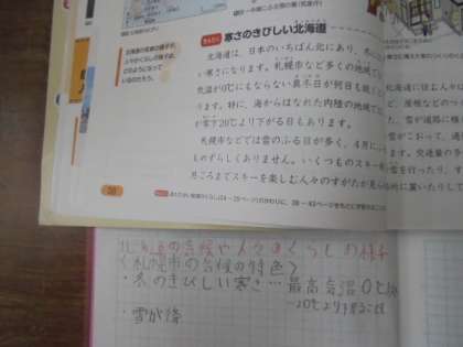 社会科の学習です。「寒さのきびしい北海道」を勉強しています。