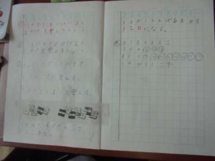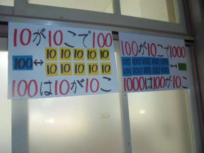 算数の学習で、10のたばがいくつあるかを勉強しています。