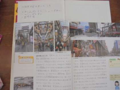 (下)社会の学習で、「大阪市で店の多いところ」を勉強しています。