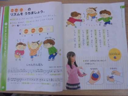 (下)音楽の授業です。「みんなで、じゃんけんぽん」
