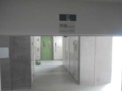 避難訓練を担当している先生が、階段の表示を作ってくださいました。日本語と英語、ハングルで「北」「中央」「南」の3か所に貼っています。