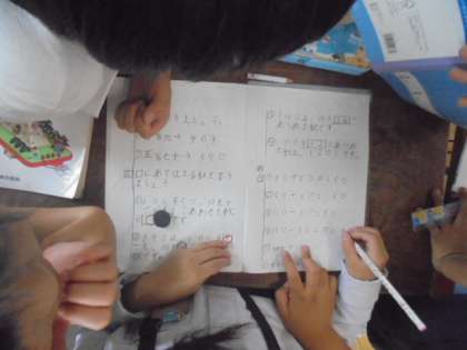 (上)算数の学習です。友だちどうし、協力して教え合っています。