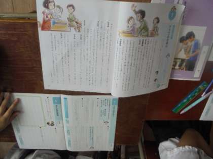 (下)道徳の授業です。道徳の教科書とノートを使っています。