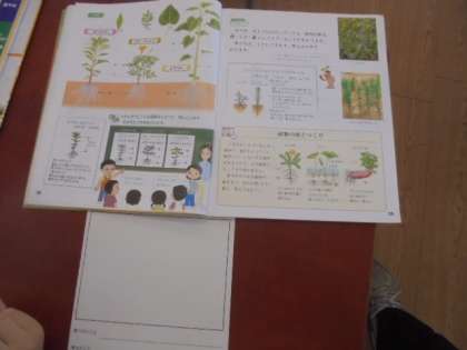 (上)理科の学習で、植物の体とつくりについて勉強しています。