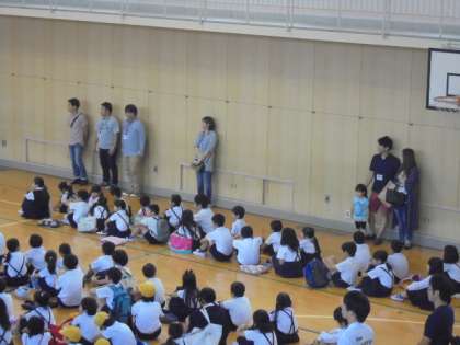 いよいよ、塩草立葉小学校ゲームフェスタの始まりです。PTAの皆さんも、早朝からお越しくださっています。