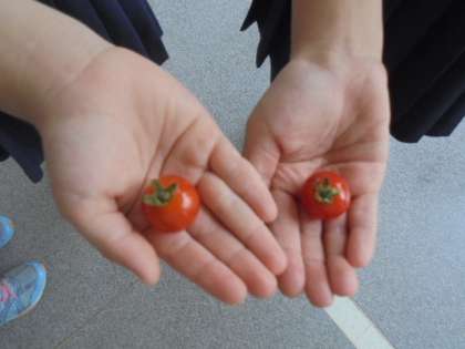 2年生の子どもたちが大切に育てているミニトマトを見せてくれました。ありがとう!