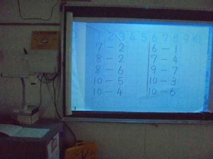 (上)算数の学習です。書画カメラを使ってわかりやすいですね。