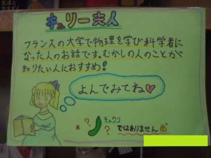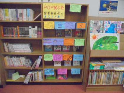 図書委員会の子どもたちが、本の紹介POPを作ってくれています。とてもわかりやすいですね。