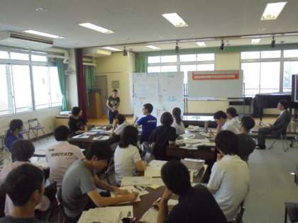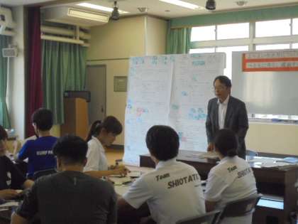 (下)講師として、大阪市立上福島小学校の坂部俊次校長先生をお招きしました。大阪市小学校教育研究会道徳部の役員(元部長)で、道徳科に造詣の深い先生です。授業についてお褒めいただき、貴重な助言もくださいました。
